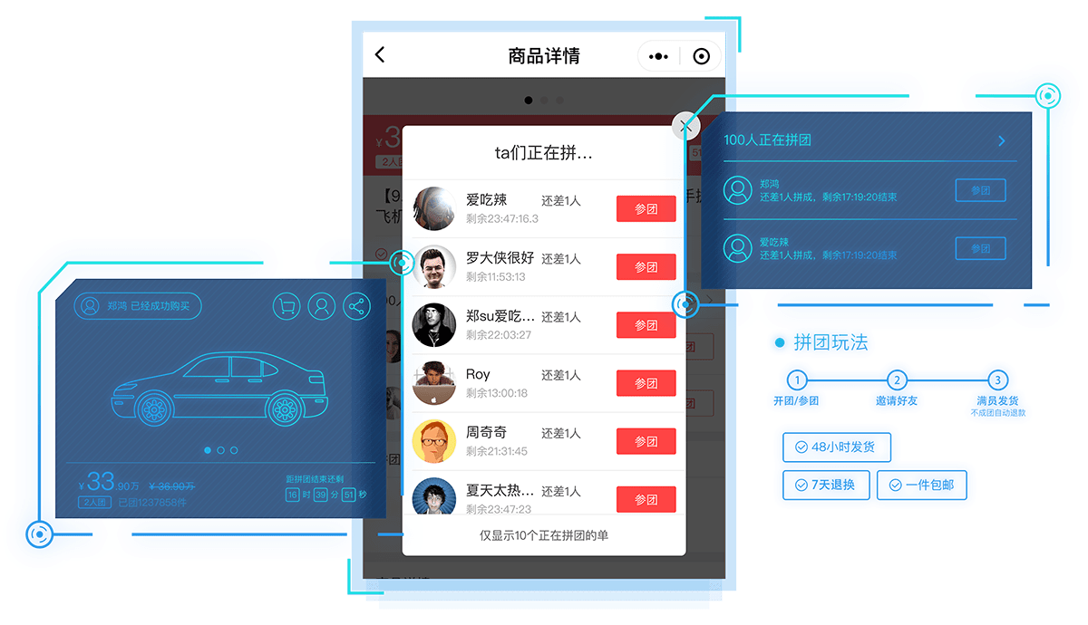 品牌統(tǒng)一輸出,分銷拼團(tuán)等裂變銷售,助力企業(yè)增加銷量及服務(wù)效率